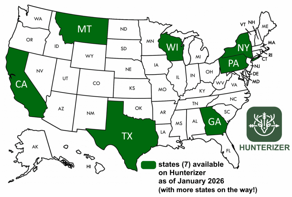 States supported by Hunterizer as of January 2026 (more coming!)