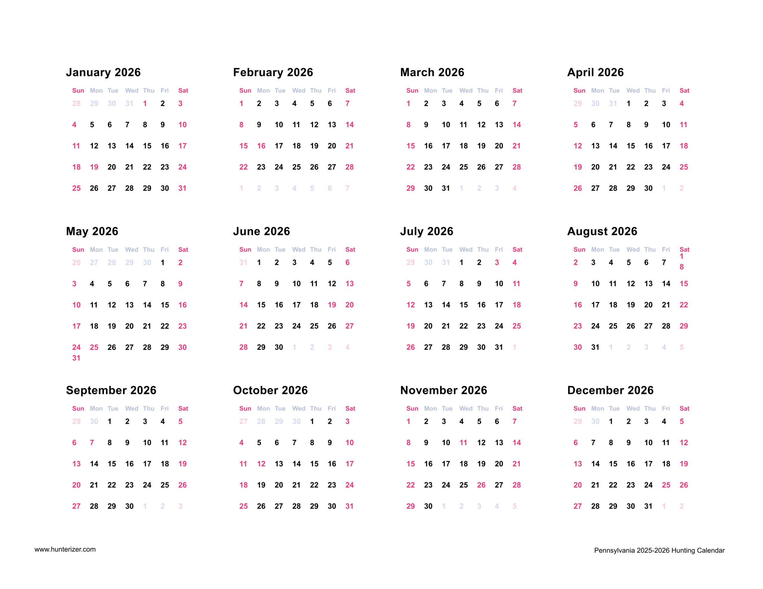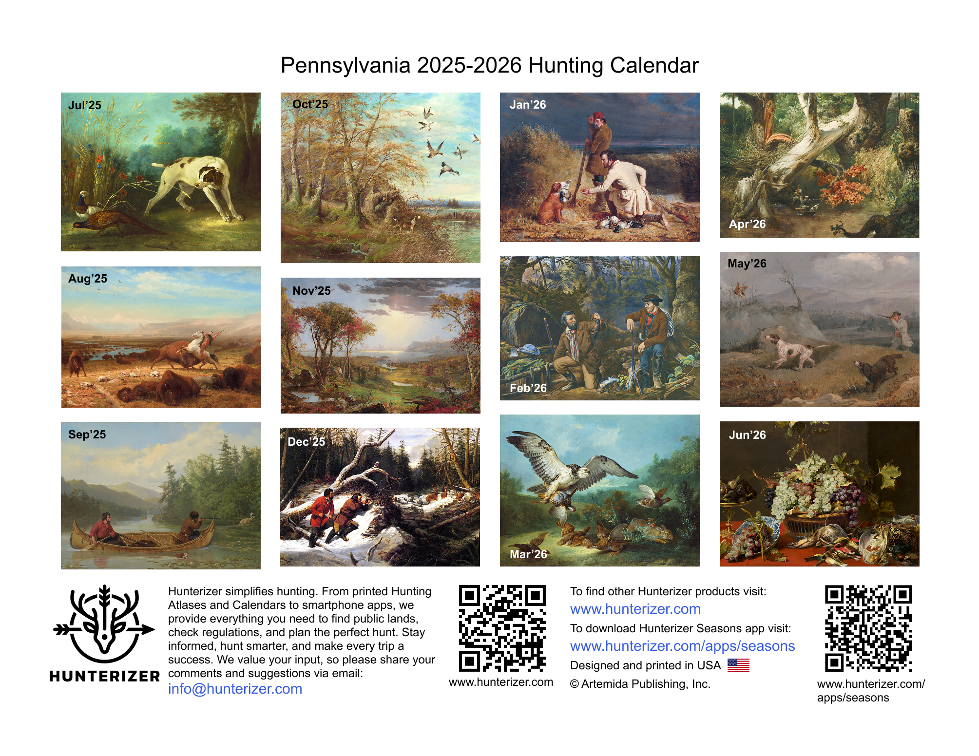 Pennsylvania 2025-2026 Hunting Wall Calendar